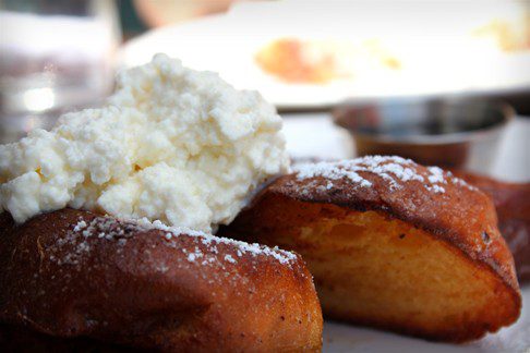 Actually, what further prompted us to (finally) stop at Belcourt was the recent and glowing review Serious Eats posted about their poached egg dish, pani frattau. Ashley had read to me about this so-called “revelation,” a mix of eggs, tomatoes, crème fraiche, and Parmesan cheese on paper-thin bread that is rumored to have a history with Sardinian shepherds, and I was sold. Sunny tables and runny eggs: we veered off our usual Sunday Brunch path to give it a try.