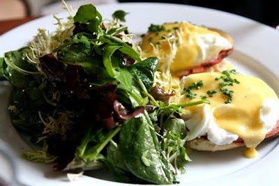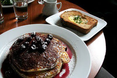 In nearly every scenario, I would choose either french toast or waffles over pancakes, but given that these were “Jo’s delicious buttermilk ricotta pancakes” I felt I couldn’t pass up the signature dish. They were, without a doubt, some of the best pancakes I’ve ever had. Served with cherry and anise-infused Maple syrup, soft pockets of Ricotta balanced the intense syrup and crispy edges. Ashley had the Eggs Bendiect and found them to be delicious as well. And as if that weren’t enough, I added the egg-in-the-hole side dish (not wanting to miss out an a savory option). It would make a tasty breakfast in and of itself. The whole grain bread surrounding the egg was practically fried, but in a good way–it was so buttery!