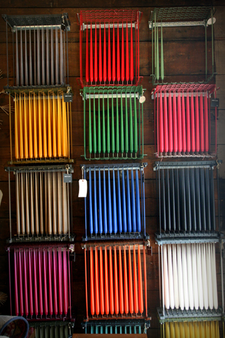 I’m more of a white votive kind of girl, but I spotted this display of tapers in Golden Calf–a store in Williamsburg–and it blew me away.