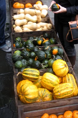 Saturday was a bit drizzly, but it made all of the squash at the greenmarket burst with color and inspired us to bring home some lovely cabbage roses–aren’t they beautiful?