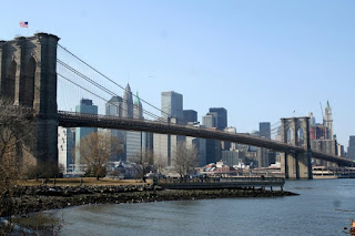 Feeling stuffed after sharing a small cup, we walked out to the park under the bridge, beside the water, and admired the view of Manhattan before trekking back over the Brooklyn Bridge. We walked south to Battery Park before curving back up from the tip of the island to TriBeCa (another