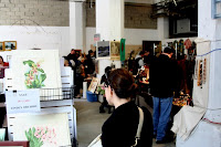 Ashley and I were pleasantly surprised to find a pop-up antique/flea market in one of the old warehouses. We wandered around looking for old prints and gilded frames, and Ashley found a dress which she ended up buying but declined to model for this blog. Daily Candy helped sponsor the event: across the street they had a gift give-away (we won some peppermint boot warmers and a sample of coffee-mint body wash after demo-ing our bean bag throwing skills). We saw some craft jewelry and we sampled a mini banana cupcake. Though tempted to indulge in more of the culinary offerings, we had a singular goal when it came to gourmet food.