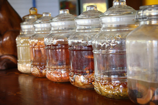 and browsed among fruit and vegetable stands before finding ourselves in a long corridor of picnic tables and lunch counters, among bags of fragrant spices and locally liqueurs.