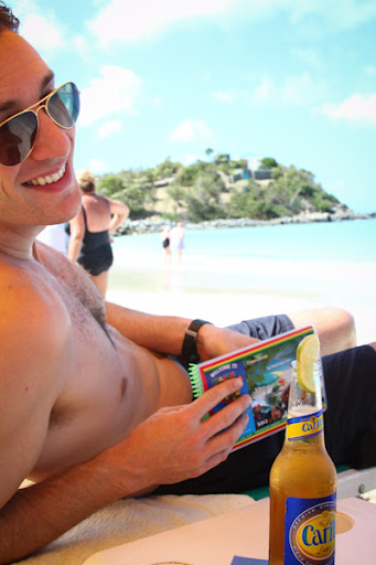 As it turned out, Pearl did bring me a beer, but we most enjoyed the fruit smoothies being peddled from the bar down the beach. Ashley had hers virgin, but mine came with a hefty dousing of rum as well as an extra shot on the side. We slathered on the sunscreen, tried to wear protective clothes, but it turned out not to be enough and we got slightly burned any way.