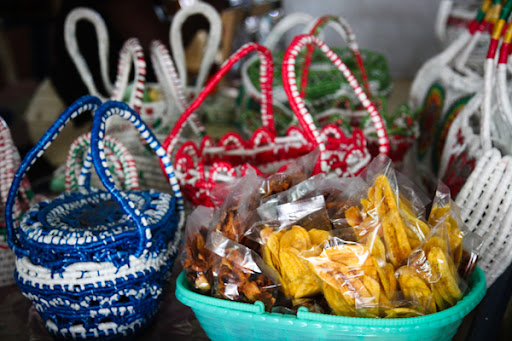 inspected baskets made from recycled plastic and picked up a bag of green and a bag of yellow plantains to compare…