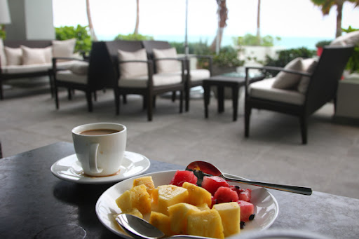 For breakfast the next morning, we were committed to minimal effort and went to the hotel’s restaurant. The coconut and mango pancakes looked wonderful, but were doughy and uninspired. The crab cakes with roasted tomatoes and egg were good, but left me wanting more. The view, however, was perfect–we overlooked the pool and the beach beyond.