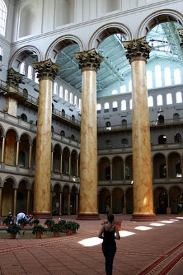 With our hotel so near to Dupont circle, it was easy to take the Metro around the city. But we started Saturday at nearby Kramer’s books for breakfast, and then chose to walk down to the mall, making our way around the Washington and Lincoln memorials and other various civic monuments before checking out the National Building Museum. Unfortunately, some of their exhibits were closed, but the lobby alone was pretty great–arcaded galleries surrounding a huge inner courtyard–and we found some cute little books for our nephew in the gift store.